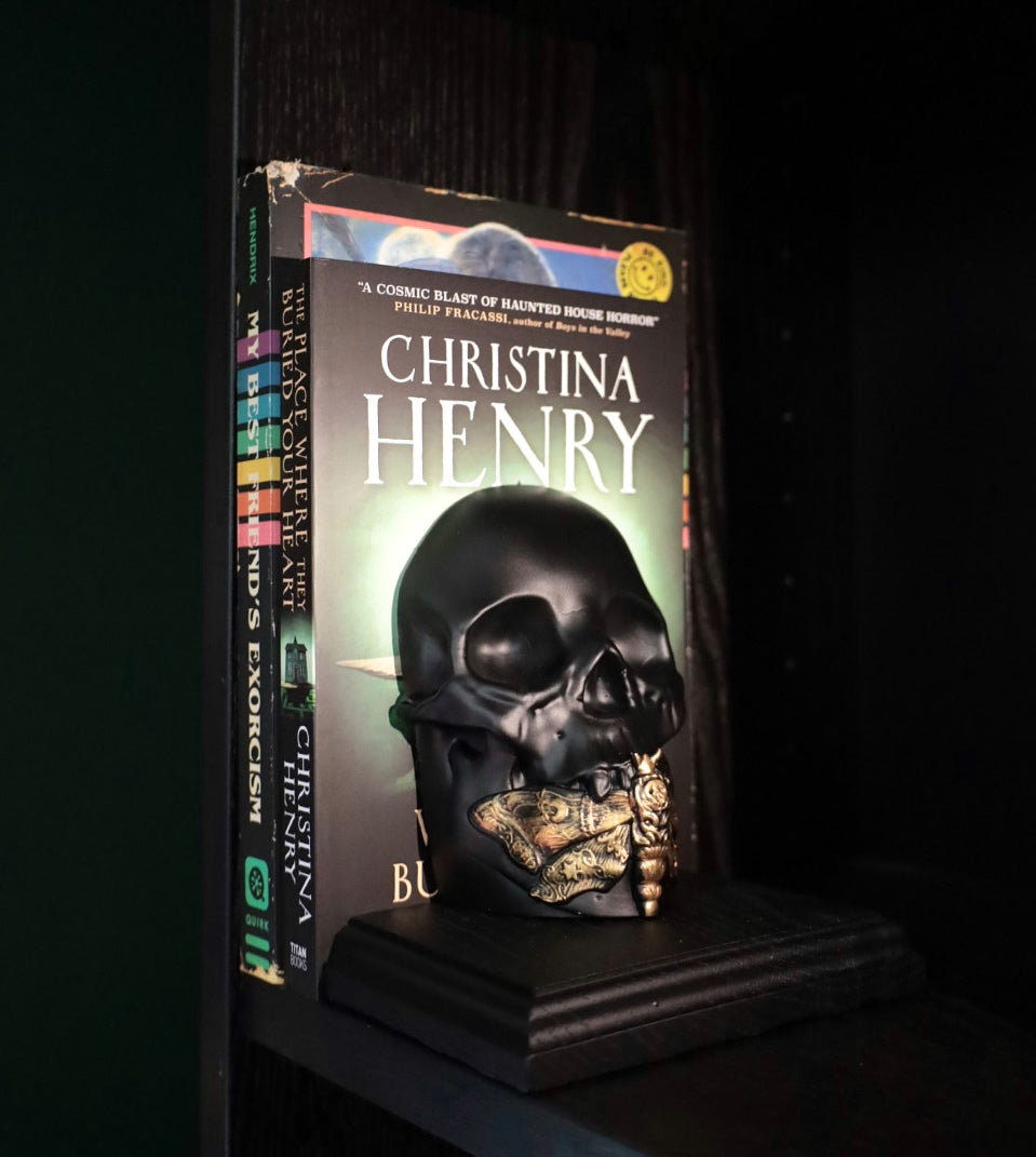 Enhance your book collection with our Death Moth Bookends. These gothic bookends feature an intricate death moth design that will add a touch of edge to any bookshelf.