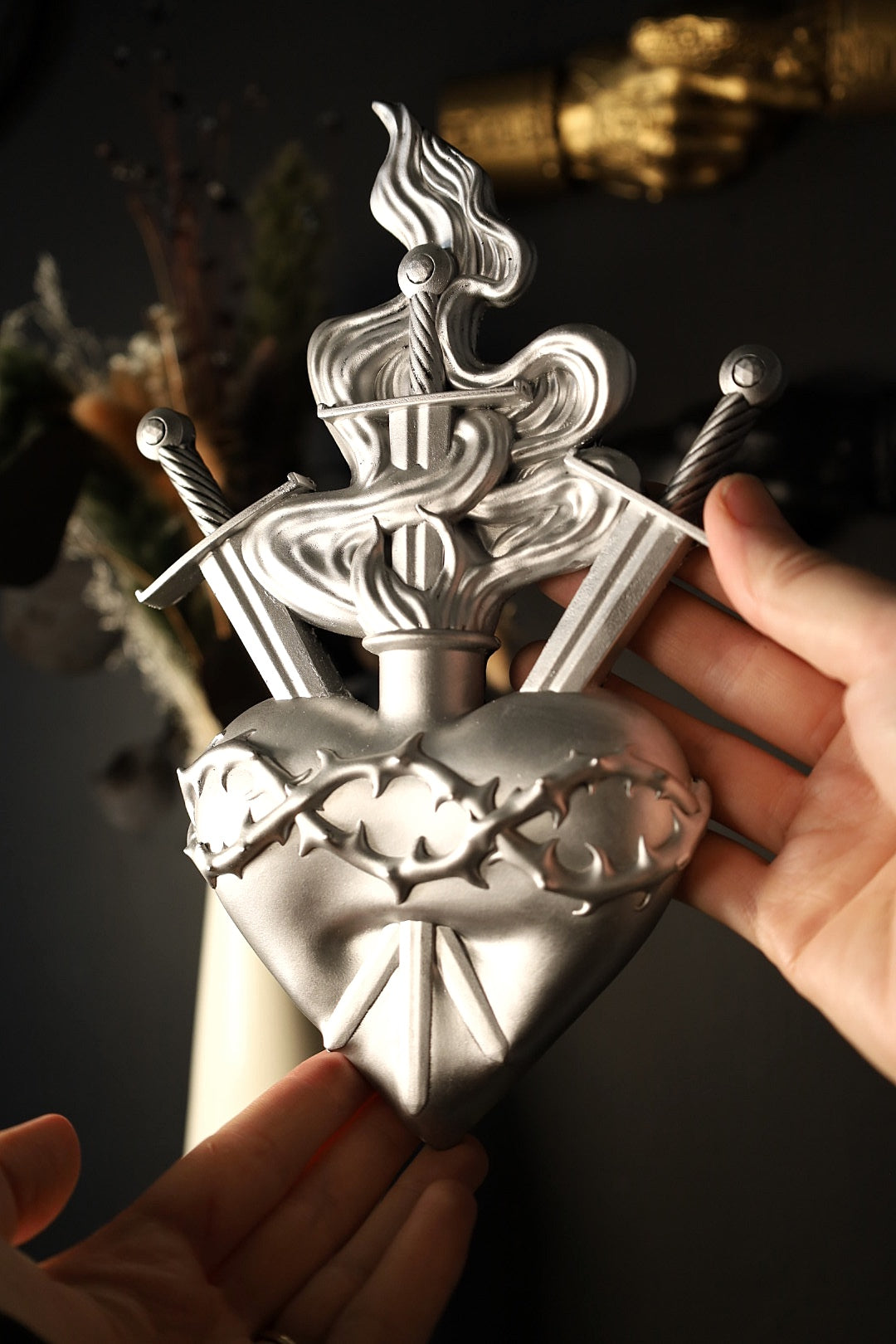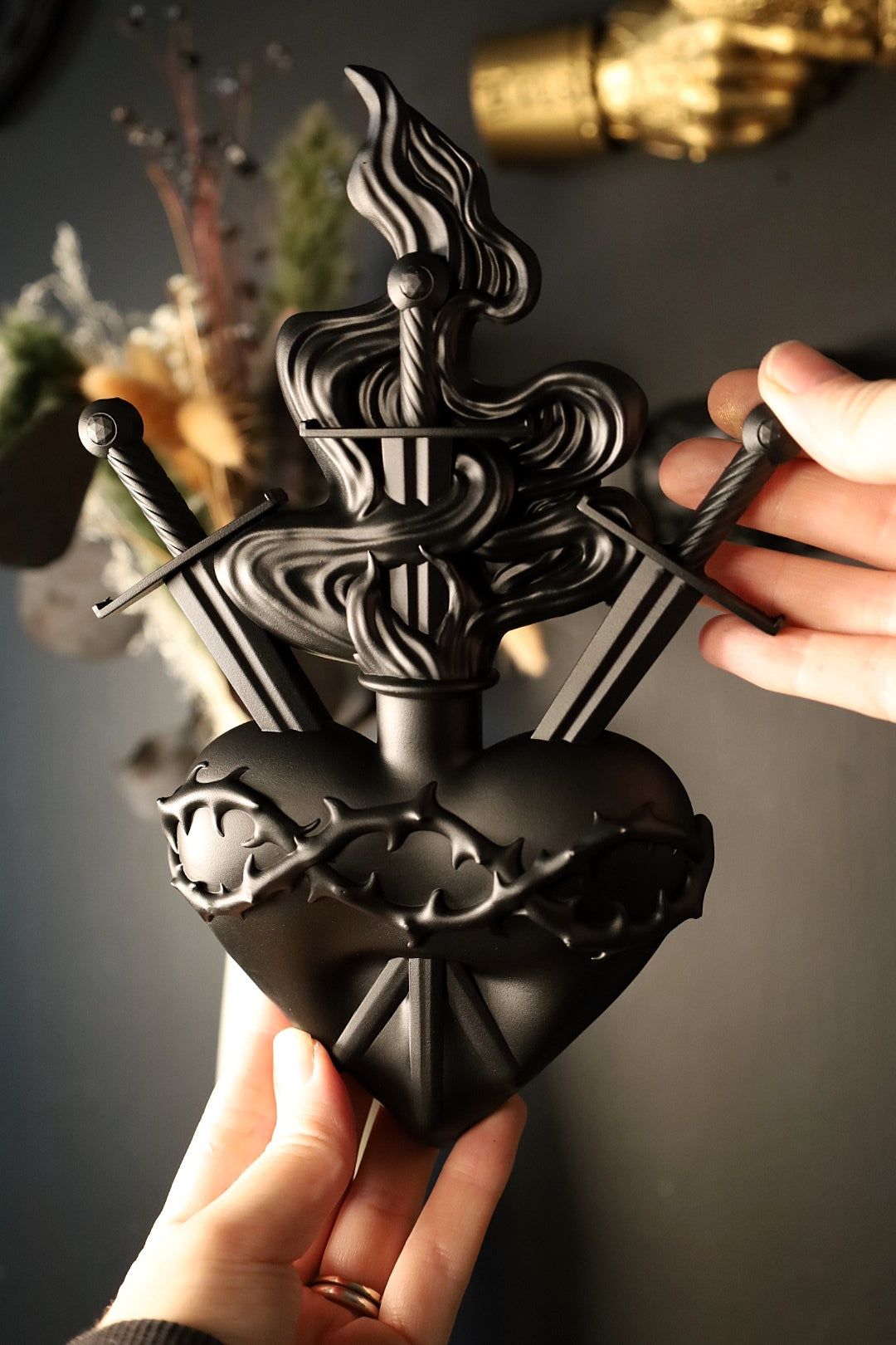 Make a bold statement with our Sacred Heart Wall Hanging - where fearless design meets powerful symbolism. This striking piece commands attention and transforms any room into a space charged with passion and intensity.