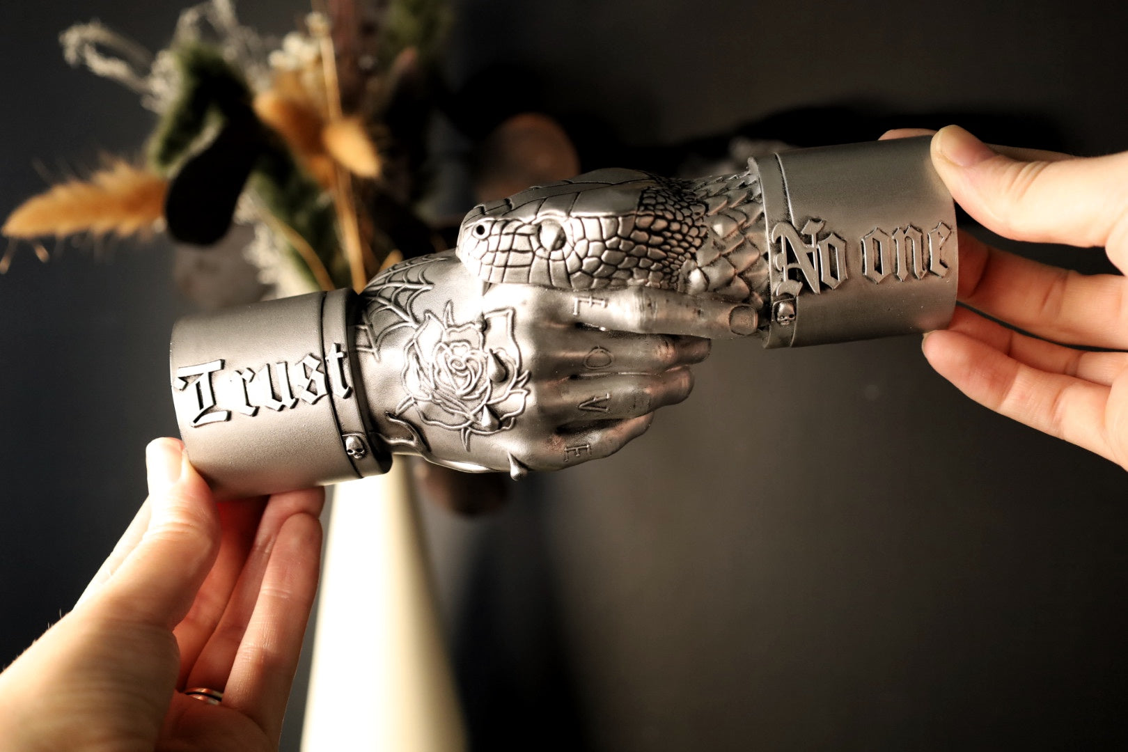 Elevate your space with the Trust No One Wall Hanging, inspired by traditional tattoo art. This daring piece combines sharp design and rebellious spirit, making it a perfect statement for those who live fearlessly. Let its striking imagery serve as a reminder to stay sharp and trust your own path. Crafted to command attention, it adds an edge of mystery and strength to any room.
